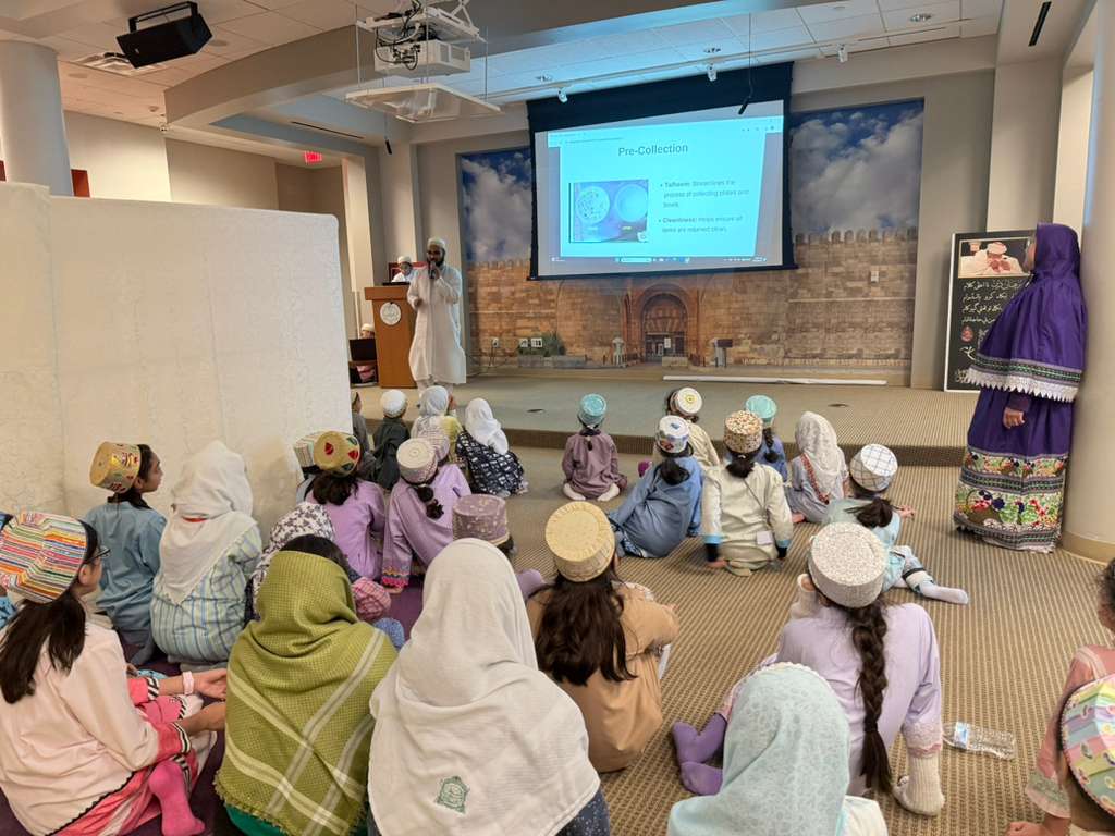 Elementary students are taught wudu and namaaz step by step, nurturing confidence in their daily worship. Secondary students gather in the auditorium for congregational namaaz, strengthening discipline and community bonds.